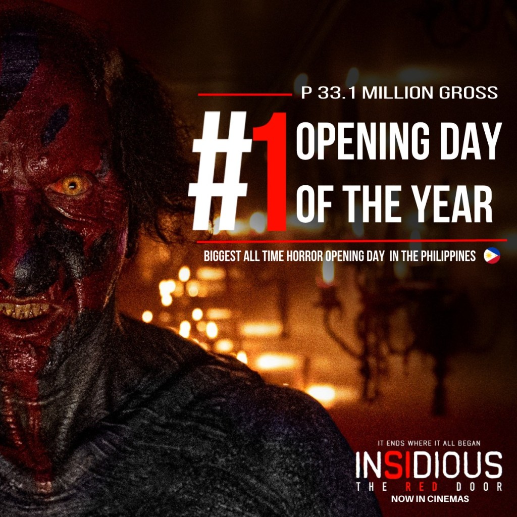“INSIDIOUS: THE RED DOOR” scares up fiery P33.1M gross; biggest Opening Day of 2023 (so far) and Biggest Horror Opening Day All Time in Philippines.
