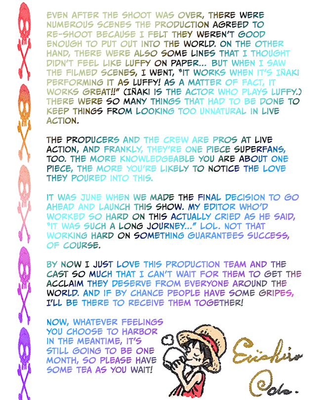 Oda-Sensei shared his heartfelt thoughts on the live-action adaptation, production, changes from the manga, and the cast and crew.