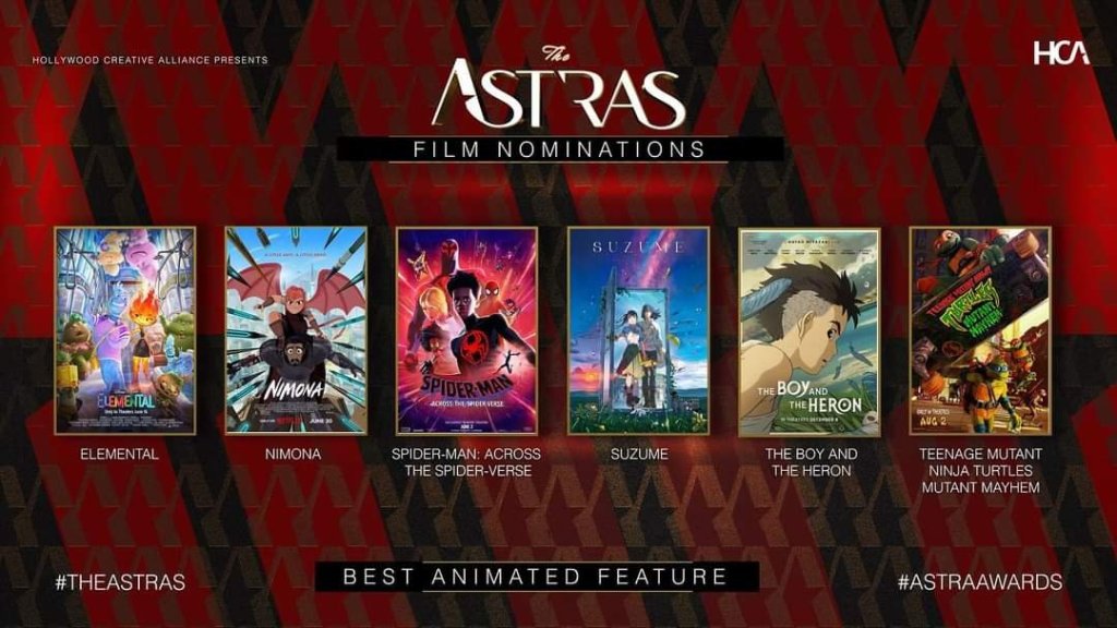 As I have said months back, Hollywood will have an animations problem in terms of awarding the best of the year. Just look at that impressive lineup from the Hollywood Creative Alliance Astras: