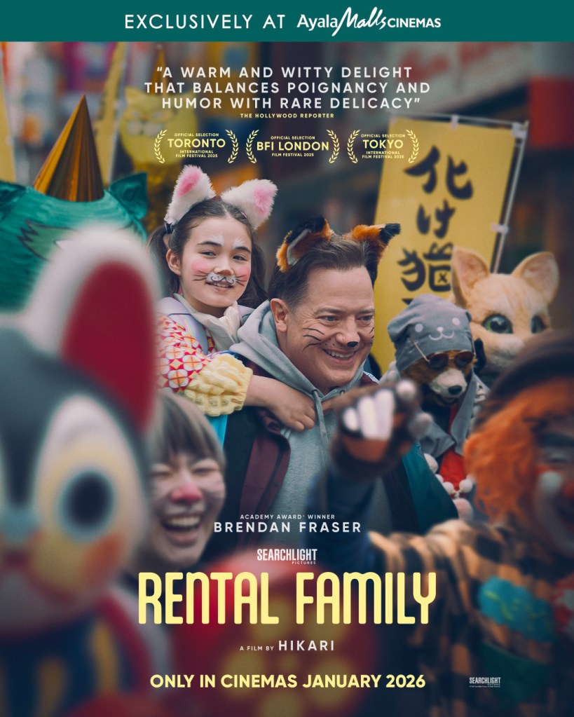 Just came from the local press screening of Rental Family. I thought it was a touching and heartfelt exploration of human connections no matter the differences. Fantastic ensemble cast led by Brendan Fraser’s unassuming performance. A feel- good story for and about found families. Review next week. Shows exclusively jn Ayala Malls Cinemas January 21st in the Philippines.